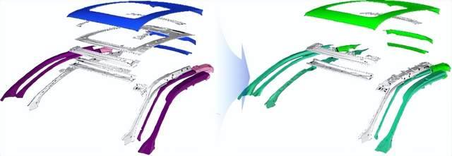 白車身主要的使用部位有車頂梁及橫梁,車門以及車窗,B柱等,很多車型會采用增強嵌入式結構從而達到更高的強度